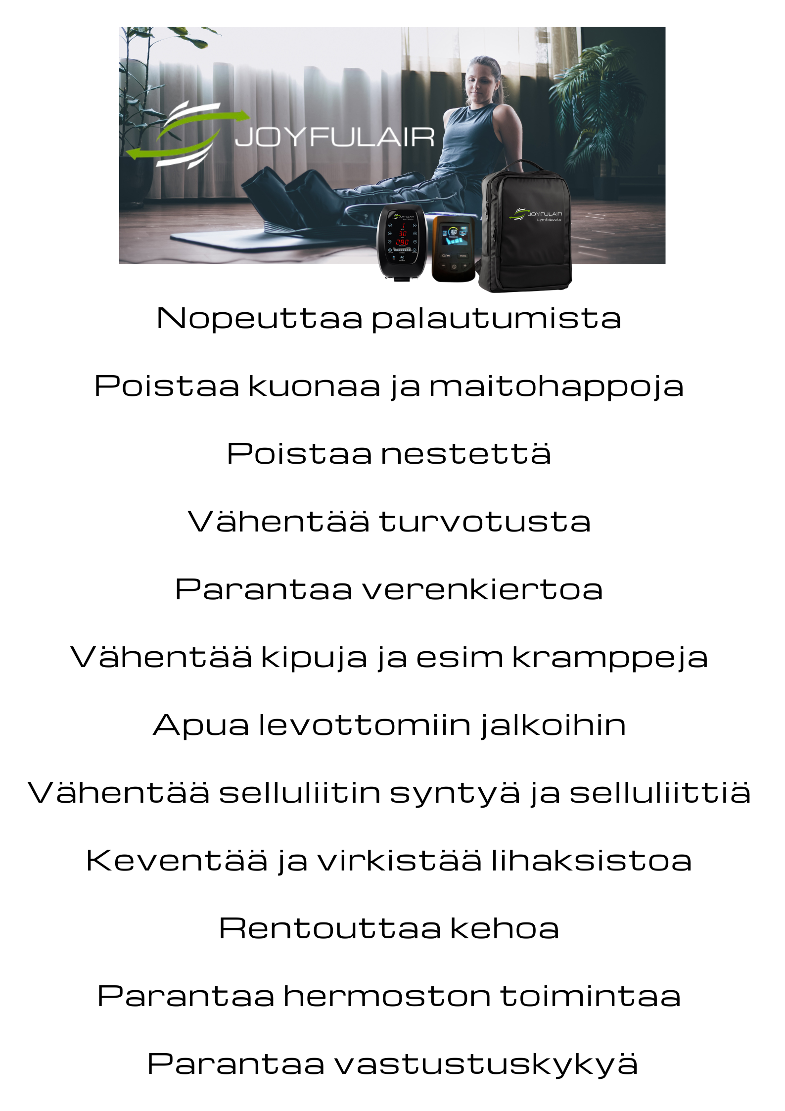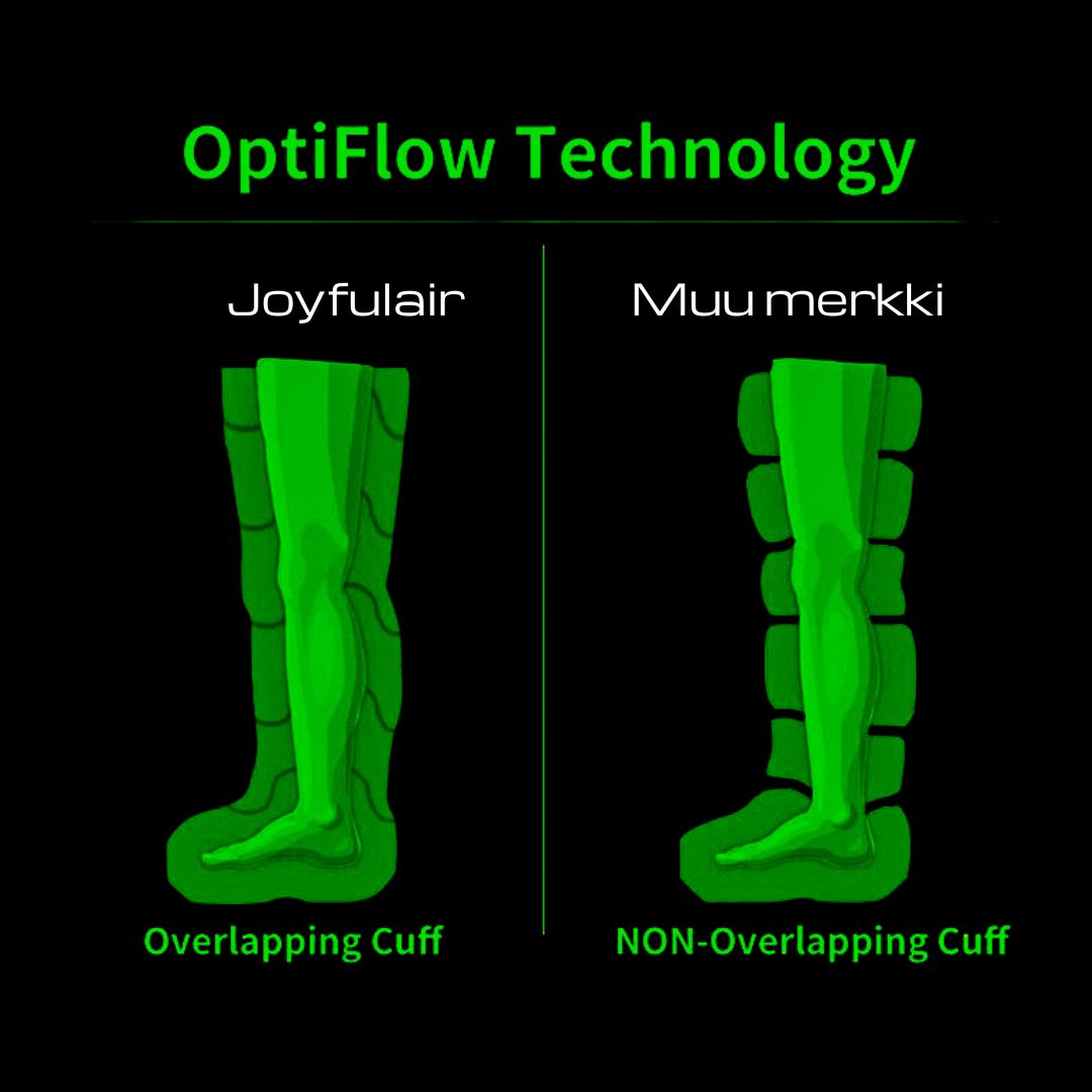 Joyfulair lahkeissa on äly-sensori, joka tunnistaa, onko kyseessä kapea ja pieni jalka, vaiko suurempi kokoinen jalka ja jakaa paineen tämän mukaan tasaisesti ja oikein, antaen jokaiselle käyttäjälle miellyttävän ja tehokkaan paineluterapian.